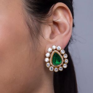 Large Kundan Earrings with Green Beads 6 |