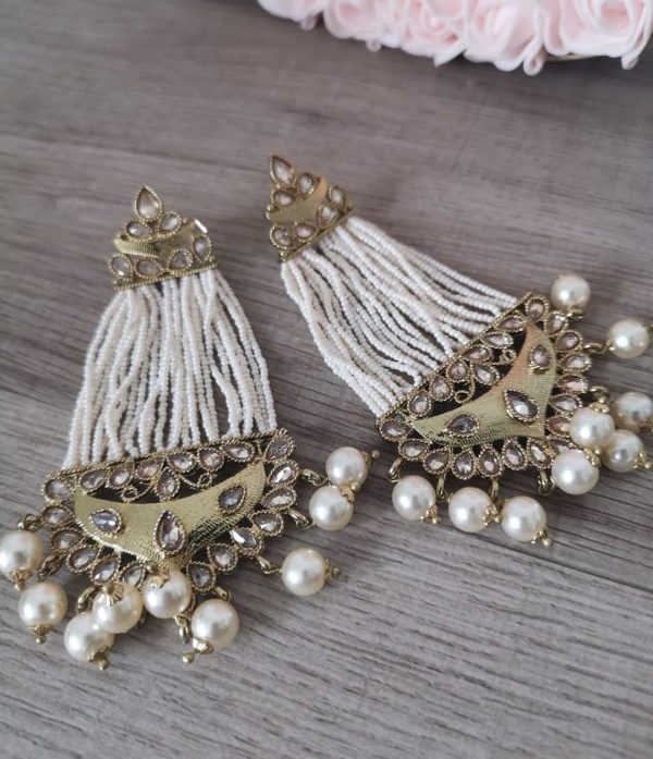 Stunning pearl jhumar fan earrings with pearl drops as seen on Shanzay.